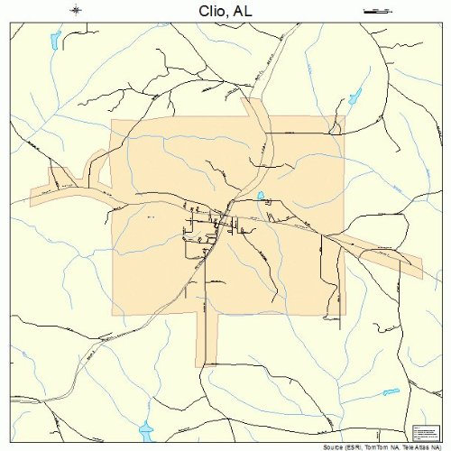 Large Street & Road Map of Clio, Alabama AL Printed poster size wall